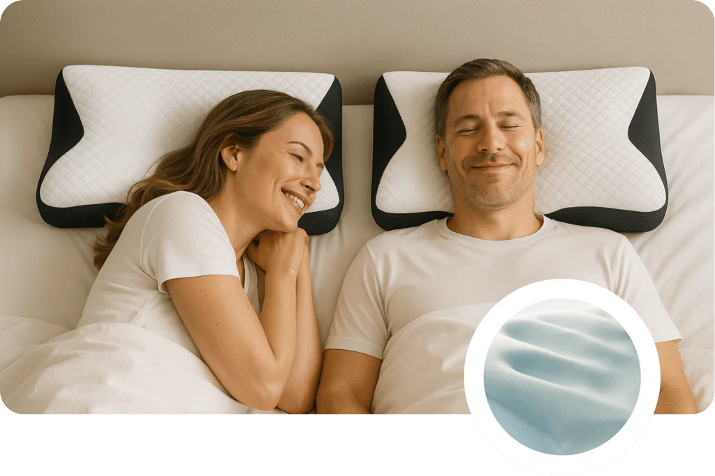 Die abgestimmte 4-fach Kombination aus der ergonomischen Form, kühlendem Bezug, Memory Schaum und hautfreundlichem Material wurde entwickelt, um angenehmer zu schlafen als mit herkömmliche Kissen.
