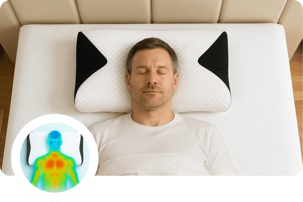 Vergleich zwischen Federkissen und ergonomischen Kissen zeigte: Nur das ergonomische Kissen unterstützte die natürliche Halskrümmung signifikant besser, verhinderte stärkeren Wärmestau und wurde von den Teilnehmern als deutlich komfortabler bewertet. Ergebnis: Höhere Schlafqualität und spürbar mehr Komfort.