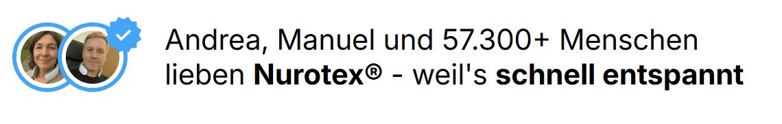 Ja. Nurotex® ist 100 % lautlos. Kein Brummen, kein Surren, kein Piepen. Nur pure Stille, damit du abschalten, komplett entspannen und runterkommen kannst.