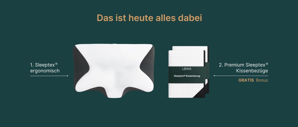 Diese 4-fach Kombination wurde speziell entwickelt, um gezielt bei unruhigem Schlaf und Verspannungsgefühlen im Nackenbereich zu unterstützen.